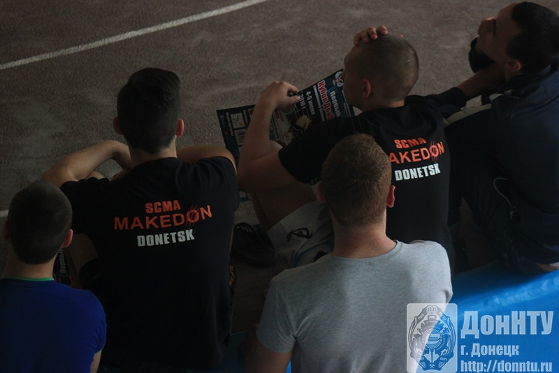 Первый день соревнований проходил в легкоатлетическом манеже ДонНТУ. Студенты нашего университета принимали участие в составе сборной команды СК «Македон-ДонНТУ». Это студент ЭТФ Иван Хаджинов (гр. ЭЛМ-15в), студент ГГФ Виктор Шихов (гр. ГИС-13); студенты ИГЗД Виталий Сысоев, Юрий Понамарев и Сергей Кошель (гр. ГЗ-15в), Сергей Кандюшин и Владислав Степанюк (гр. ПБ-15в).