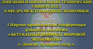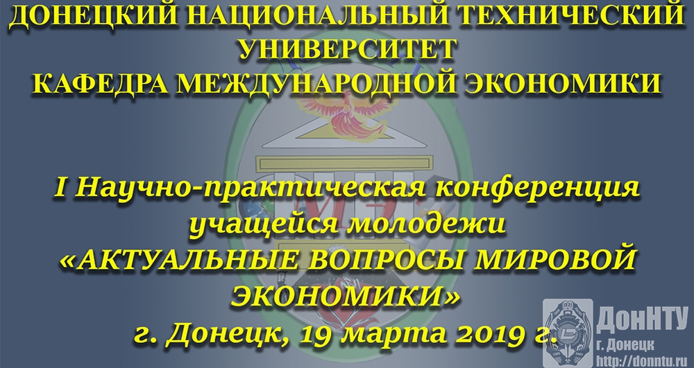 В Донецком национальном техническом университете на кафедре «Международная экономика» 19 марта состоится