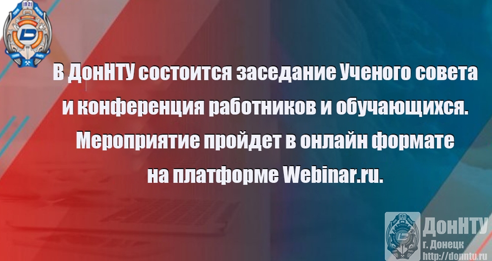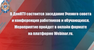 28 декабря 2022 года в 14.00 состоится заседание Ученого совета и конференция работников и обучающихся ДонНТУ. Мероприятие пройдет в онлайн формате на платформе Webinar.ru.