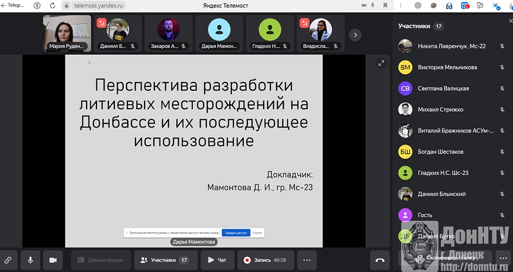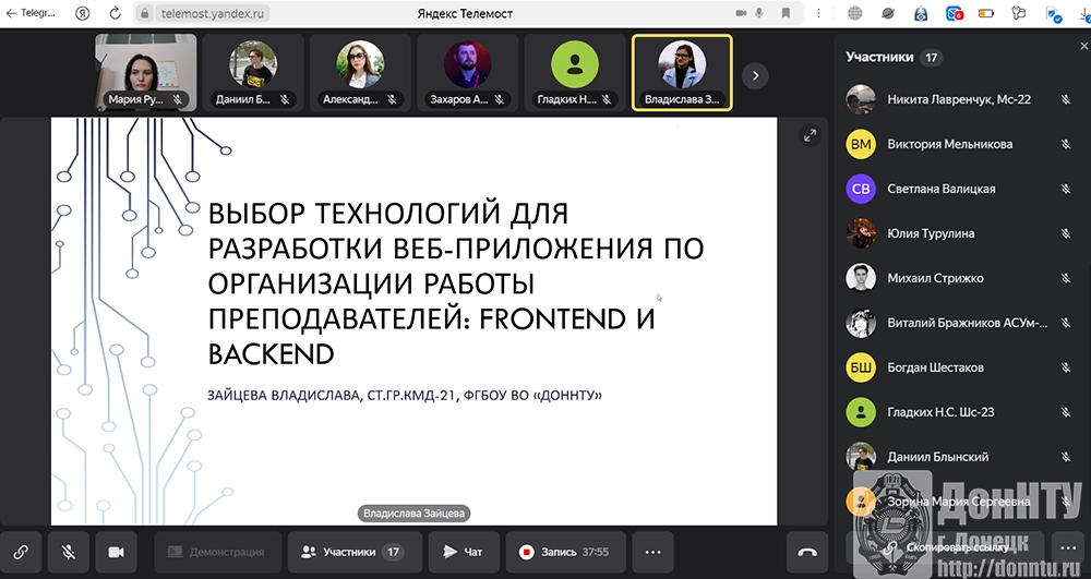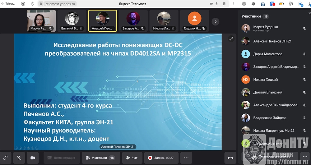 В Донецком национальном техническом университете 19 ноября в онлайн-режиме прошла научно-техническая конференция для студентов, аспирантов и молодых учёных «Донбасс будущего глазами молодых учёных».
