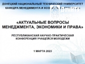 Кафедра международной экономики Донецкого национального технического университета совместно с Малой Академией Наук, Институтом экономических исследований, Новгородским государственным университетом имени Ярослава Мудрого и Донским государственным техническим университетом приглашают учащихся общеобразовательных, средних специальных и высших учебных заведений, аспирантов, соискателей принять участие в работе V Международной научно-практической конференции учащейся молодежи «Актуальные вопросы мировой экономики», которая состоится 14 марта