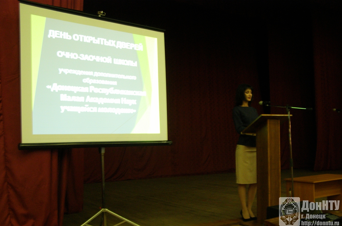 В субботу, 17 сентября, в большом актовом зале 9-го учебного корпуса Донецкого национального технического университета прошел День открытых дверей очно-заочной школы (ОЗШ) учреждения дополнительного образования «Донецкая Республиканская Малая Академия Наук учащейся молодежи», который стал итогом профориентационной и агитационной кампании по набору обучающихся в 2016-2017 учебном году.