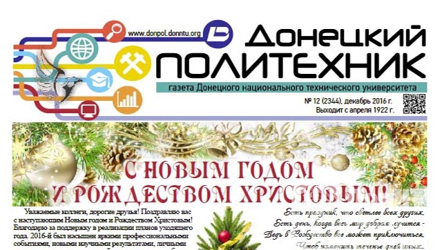 В декабре вышел в свет выпуск № 12 газеты «Донецкий политехник».