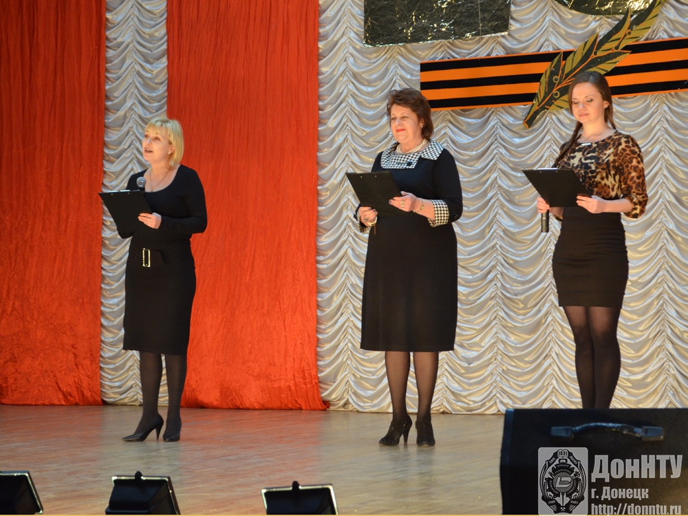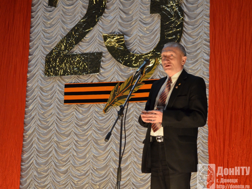 Поздравили присутствующих ректор ДонНТУ К. Н. Маренич, проректор, директор ИГЗД, полковник запаса П. В. Стефаненко и председатель профсоюза работников С. А. Селивра. Они пожелали всем мирного неба, бодрости духа и новых побед.