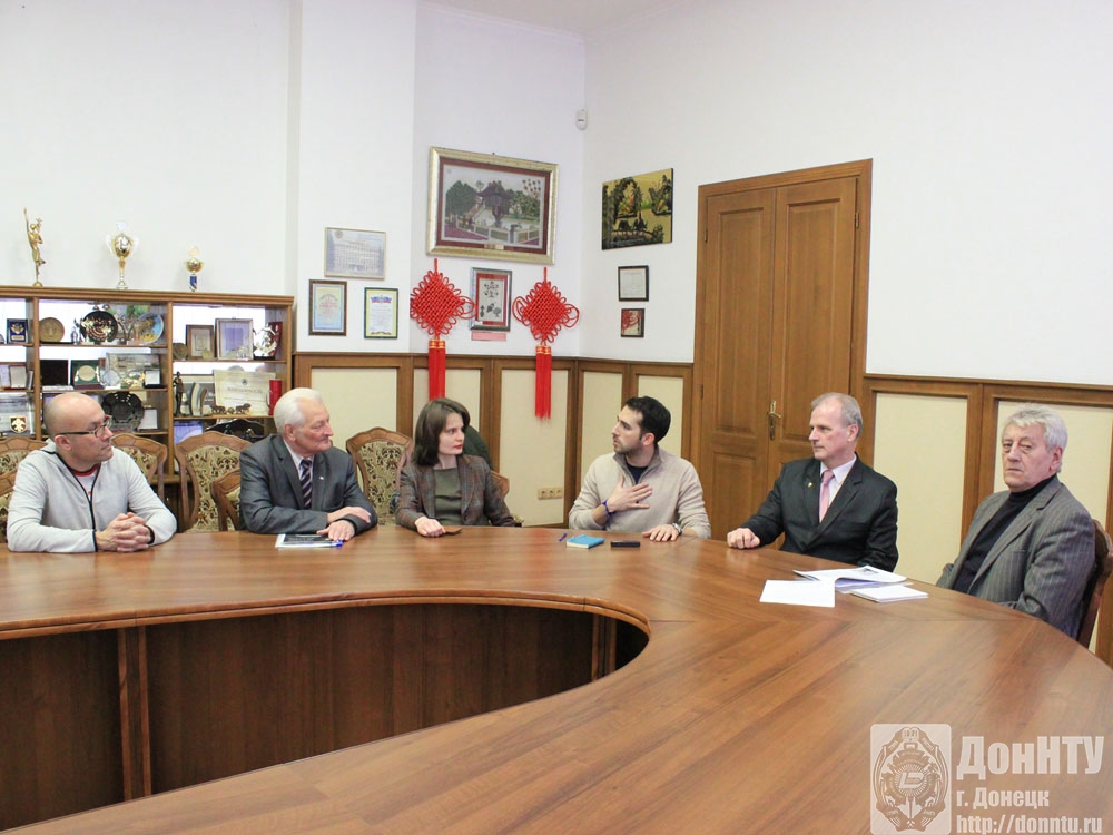 Журналиста интересовало экономическое положение вуза и изменения, которые произошли в нашем университете из-за войны. Проректор не только ответил на вопросы, но и рассказал о международной деятельности ДонНТУ, познакомил с галерей почётных докторов, показал результаты обстрела нашего вуза украинской армией.