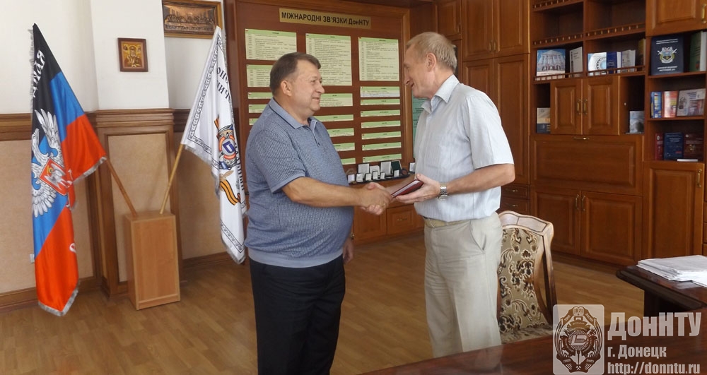 На приёме в честь вручения диплома доктора наук ректор ДонНТУ Константин Маренич, проректор по научной работе Юрий Булгаков, Ученый секретарь ДонНТУ Ольга Волкова и специалист секретариата Елена Лавшонок пожелали Владимиру Григорьевичу творческого вдохновения в деле руководства коллективом научно-исследовательского института и подготовки научных кадров.