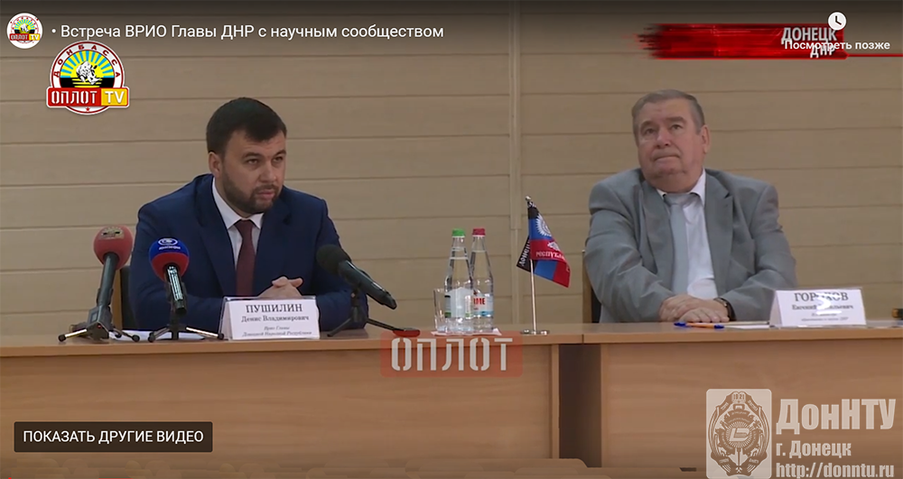Делегация ДонНТУ приняла участие во встрече врио Главы ДНР Дениса Пушилина с научным сообществом