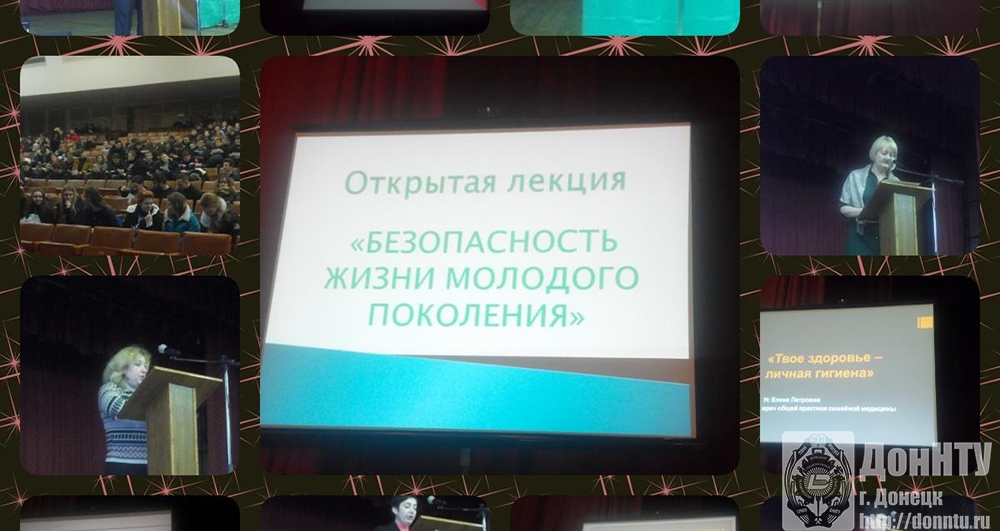 Вопросы повышения культуры здоровья являются приоритетным направлением работы со студентами в Донецком национальном техническом университете. Отдел охраны труда совместно с психологической службой ДонНТУ провел открытую лекцию для студентов 1-го курса «Безопасность жизни молодого поколения». Ее цель – развитие мотивации к ведению здорового образа жизни.