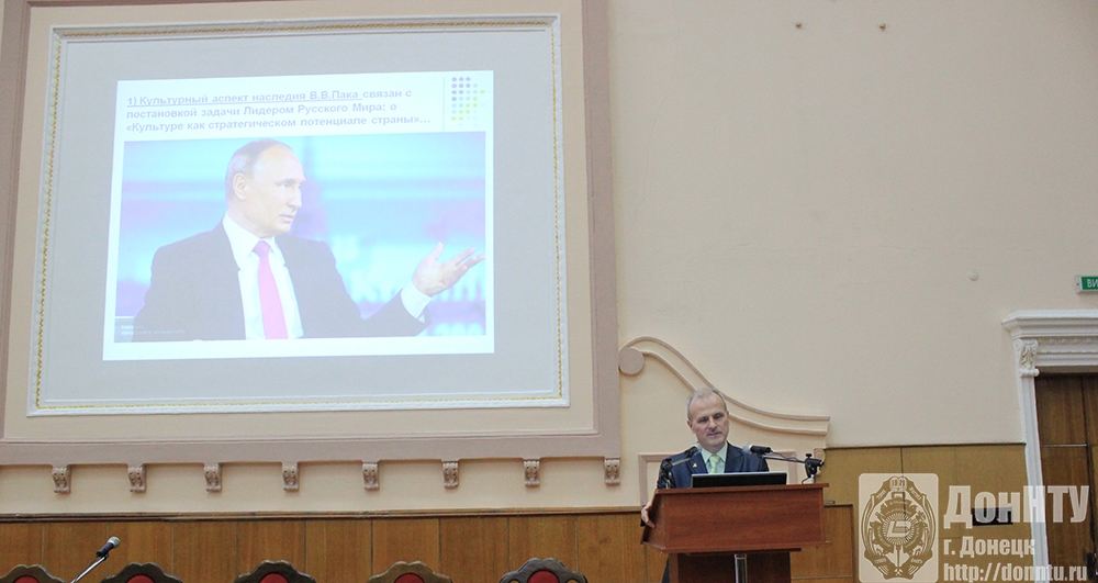26 декабря в Донецком национальном техническом университете прошло последнее в этом году заседание лектория «Корифеи культуры: имена, образы, легенды», который был посвящен В. В. Паку. В своем выступлении начальник международного отдела доцент С. Г. Джура затронул следующие вопросы: энциклопедичность личности В. В. Пака; культурный аспект и синтетичность наследия; оправдание добра, или Русский Путь; доказательство материальности мысли; решение основного вопроса философии; подтверждение ученым гипотезы принципа гениев человечества и др.