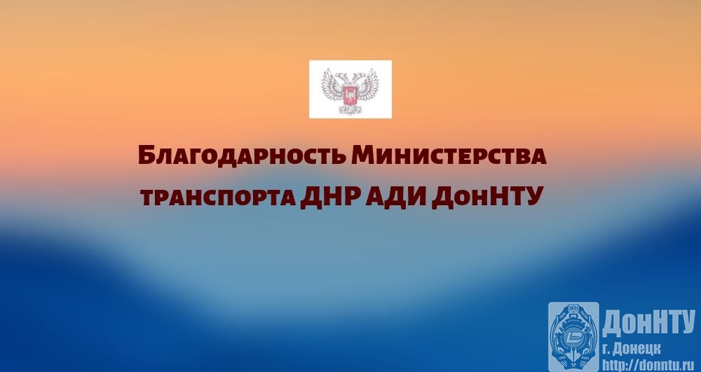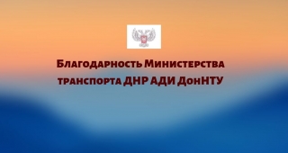 Благодарность Министерства транспорта ДНР АДИ ДонНТУ