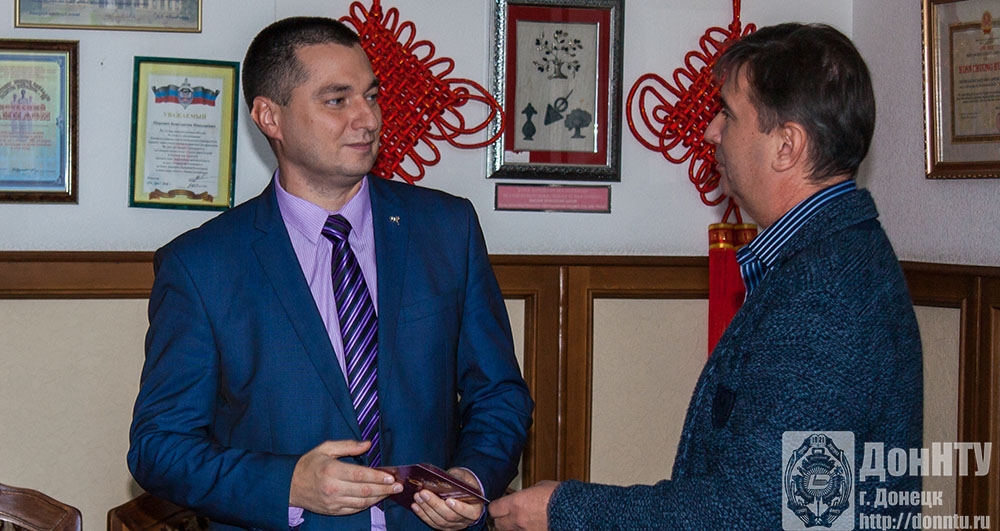 Представитель Минуглеэнерго ДНР поздравил коллектив ДонНТУ с наступающим Днем работника образования и науки и вручил награды