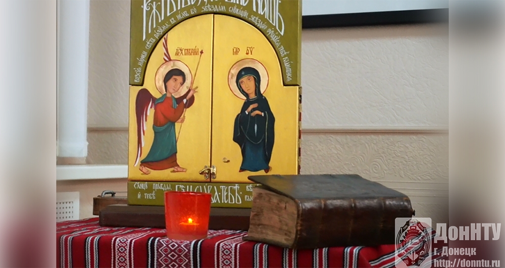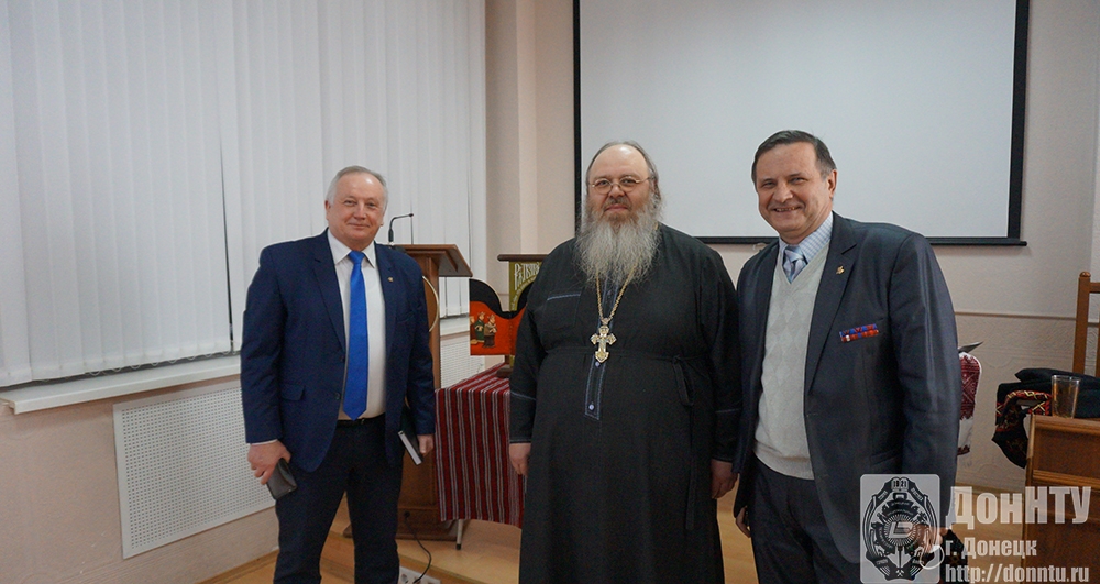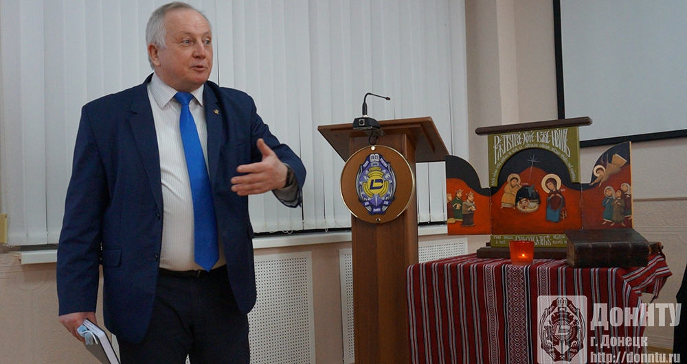 В рамках сотрудничества Православной Церкви и ДонНТУ в духовно-просветительской и культурной сфере 20 февраля университет посетил благочинный Докучаевского округа протоиерей Никита Панасюк. Он выступил перед сотрудниками вуза с так называемым «Вертепным действом» – театрализованным повествованием о Рождестве Христовом и судьбах человечества.