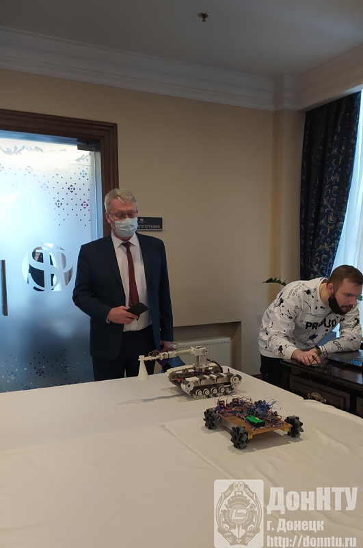 В рамках форсайт-сессии ДонНТУ принял активное участие в работе выставочной зоны. Свои достижения в области робототехники продемонстрировали сотрудники и студенты кафедры электропривода и автоматизации промышленных установок (заведующий кафедрой – Павел Иванович Розкаряка, доцент, канд.техн.наук). Выставочные экспонаты вызвали глубокий интерес со стороны молодежи, руководителей вузов и Республики.