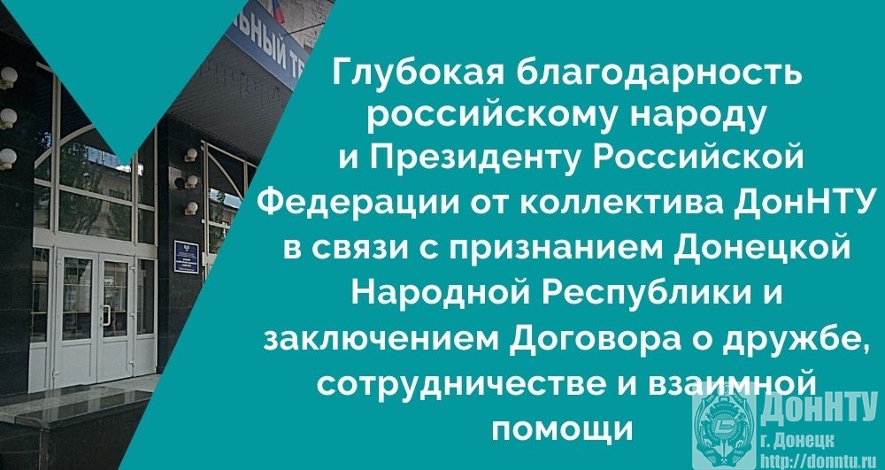 Глубокая благодарность российскому народу и Президенту Российской Федерации от коллектива ДонНТУ