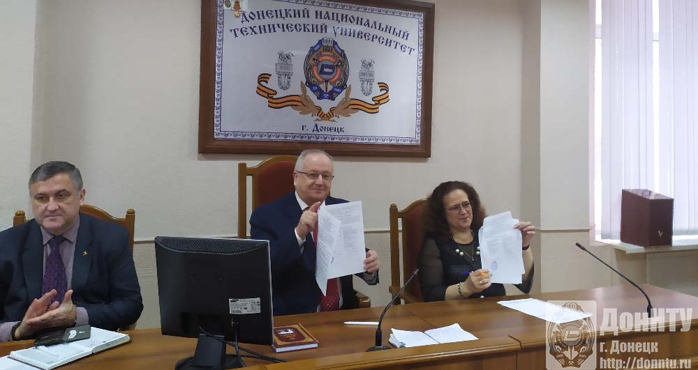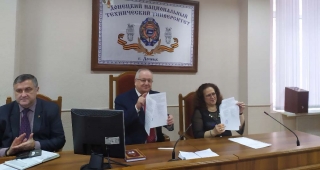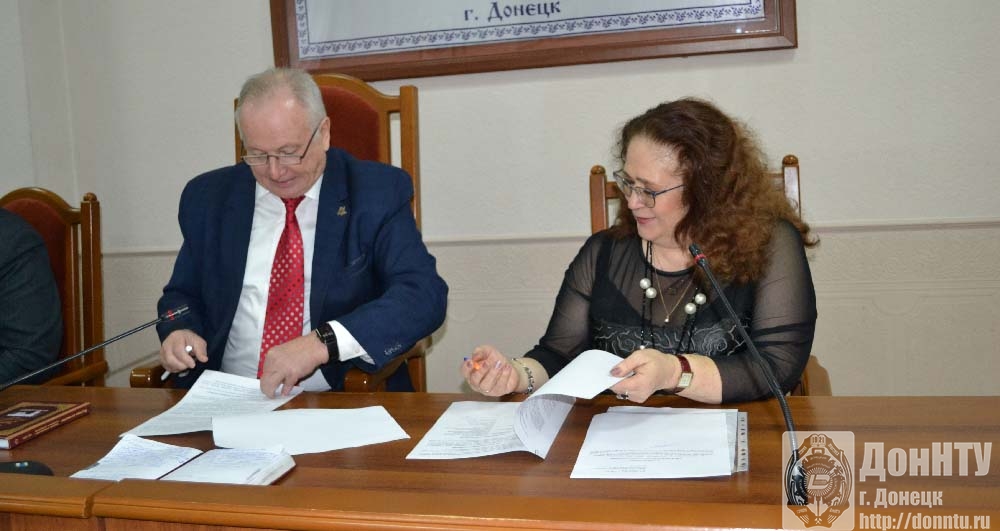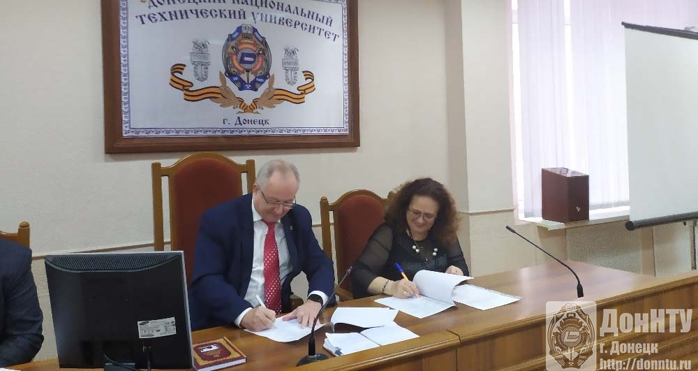 В Донецком национальном техническом университете 11 октября на заседании ректората прошла церемония подписания договора о сотрудничестве с Государственным учреждением «Институт научно-технической информации» (ГУ «ИНТИ»). Документ подписали ректор ДонНТУ А. Я. Аноприенко и директор ГУ «ИНТИ» В. В. Солдатова. Это важный этап в совместной деятельности двух учреждений, у которых намечается очень широкий объём совместной работы, и в первую очередь поддержка библиотечного фонда, защита прав в области интеллектуальной деятельности, а также многое другое.
