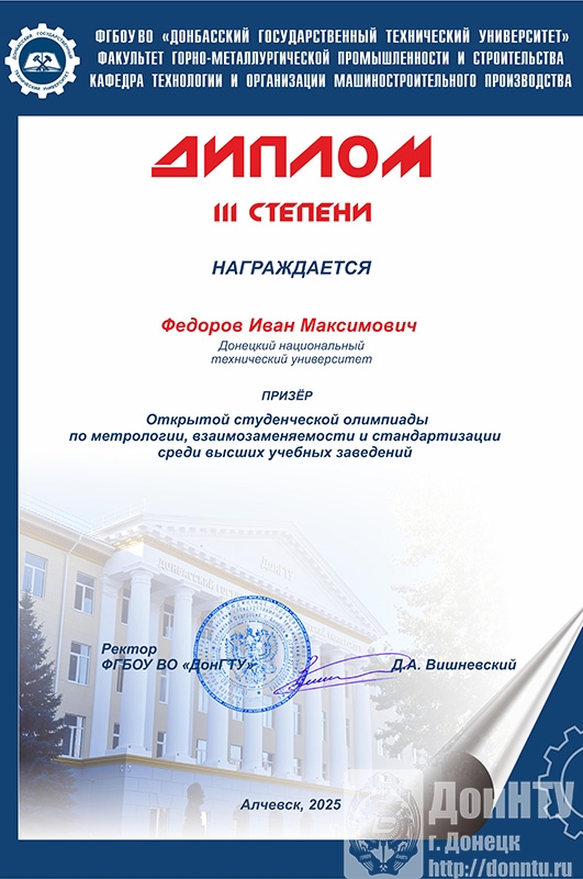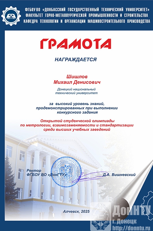 Студенты ДонНТУ – призёры Открытой студенческой олимпиады по метрологии, взаимозаменяемости и стандартизации