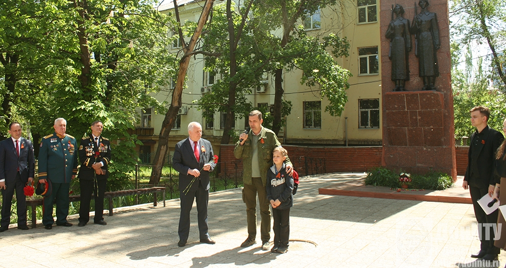 В своём выступлении Александр Яковлевич Аноприенко сказал, что политехники традиционно собираются у этого памятника два раза в год – на День освобождения Донбасса и 9 Мая. В юбилейную годовщину Победы все особенно верят в скорое победное завершение специальной военной операции. Он отметил, что мы никогда не забудем преподавателей, сотрудников и студентов вуза, которые отдали свои жизни за Родину и мирное будущее народа. Также ректор подчеркнул, что и сейчас правое дело своих дедов и прадедов продолжают донецкие политехники, защищая страну и её граждан. Александр Яковлевич напомнил, что всем нам предстоит большая работа по восстановлению и вуза, и Донбасса в целом.