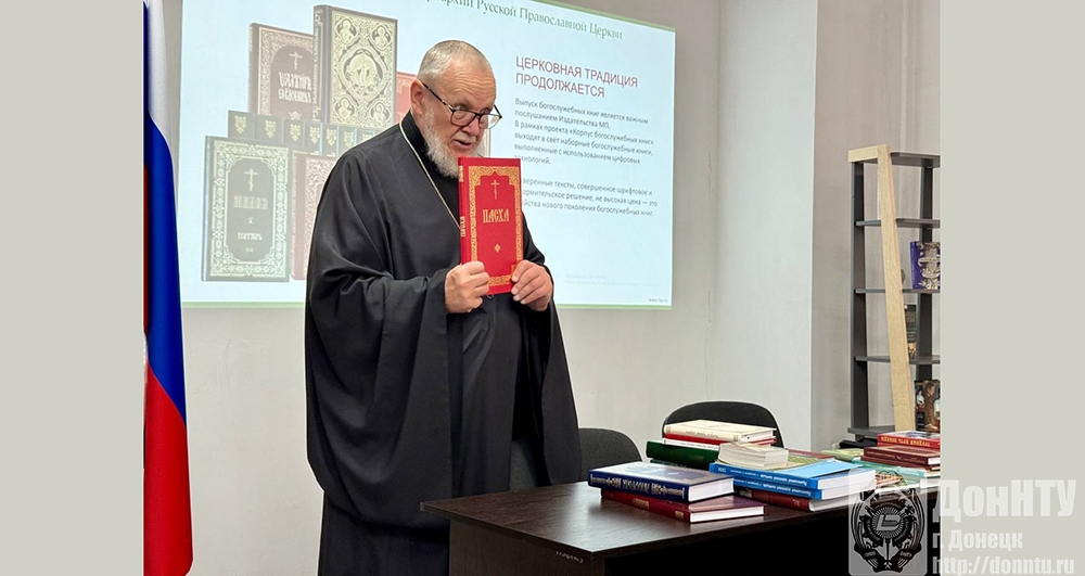 Проректор ДонНТУ Алексей Борисович Бирюков и заведующая сектором НТБ Екатерина Анатольевна Полеводова посетили мероприятие с участием главного редактора Издательства Московской Патриархии епископа Николая Балашихинского, которое состоялось 16 сентября в Донецкой республиканской библиотеке для молодёжи. В своей речи епископ Николай подробно ознакомил собравшихся с многогранной деятельностью издательства, представив аудитории новейшие издания богослужебной, исторической, детской и иной литературы. Он отметил их практическую направленность и доступность для самого широкого круга читателей. Епископ Николай напомнил, что книга была и остаётся ключевым, веками проверенным, источником информации и духовного знания. Участники мероприятия задали ему интересующие их вопросы, касающиеся, в том числе, проблем популяризации православной литературы в современном мире, важности её распространения в библиотеках.