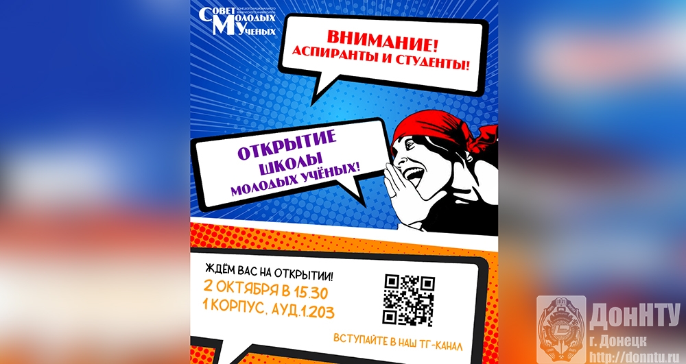 Если вы аспирант или студент старших курсов и слова «НИРС», «статья», «конференция», «диссертация» вызывают у Вас страх, то приглашаем на открытие Школы молодых учёных ДонНТУ, которое состоится 2 октября в 15:30 в аудитории 1.203.