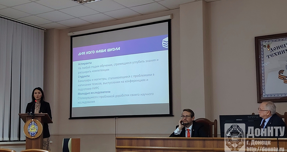 В малом зале учёного совета Донецкого национального технического университета 2 октября состоялось открытие Школы молодых учёных вуза. Она создана на базе Совета молодых учёных ДонНТУ с целью оказания помощи аспирантам, студентам и начинающим исследователям в выборе и проведении самостоятельной исследовательской работы, получении навыков разработки научной проблемы, подготовке к выступлениям на научно-практических конференциях и участию в конкурсах, написании научно-исследовательских работ и многом другом, способствуя их профессиональному росту.