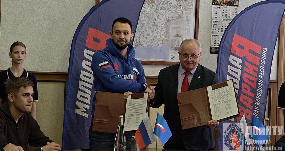 Донецкий национальный технический университет 6 октября подписал соглашение о сотрудничестве и взаимодействии с Донецким региональным отделением всероссийской общественной организации «Молодая Гвардия Единой России», что рассматривается как возможность вовлечения студентов вуза в общественно полезную деятельность и реализации совместных проектов, ориентированных на патриотическое воспитание и социальную ответственность.