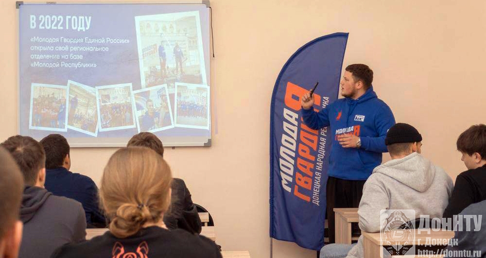 «Молодая Гвардия Единой России» (МГЕР) активно работает над патриотическим воспитанием и всесторонним развитием молодёжи в Донецкой Народной Республике. Эта организация, охватывающая спортивное, интеллектуальное, волонтёрское, патриотическое и медиа направления, 10 октября провела агитационную встречу со студентами ДонНТУ.