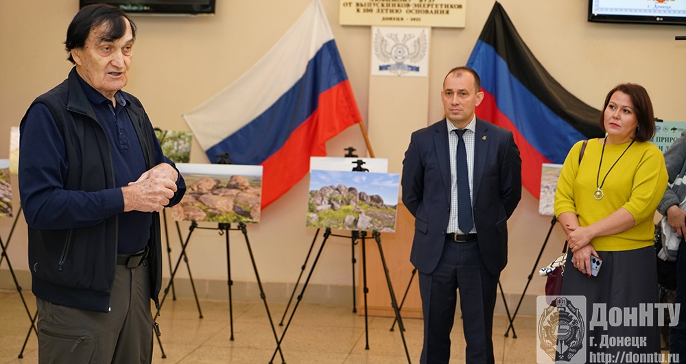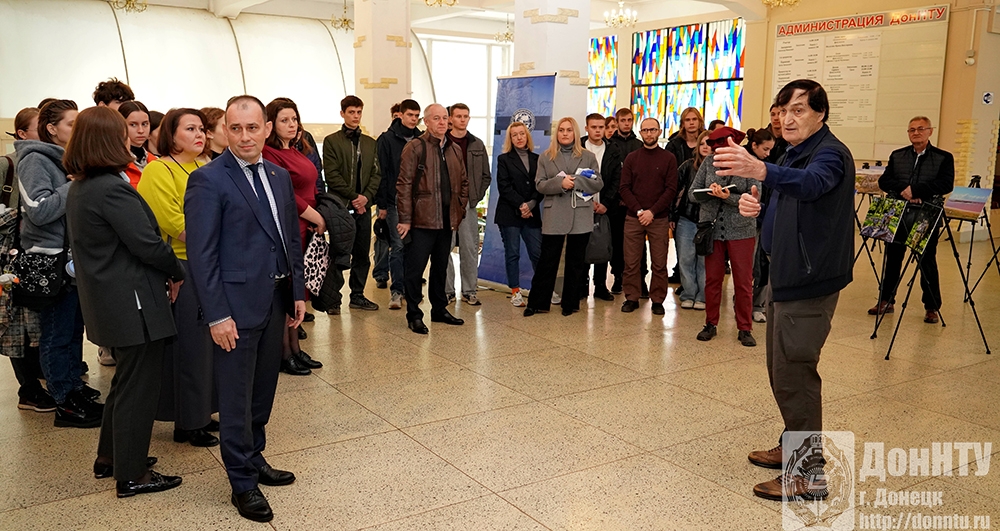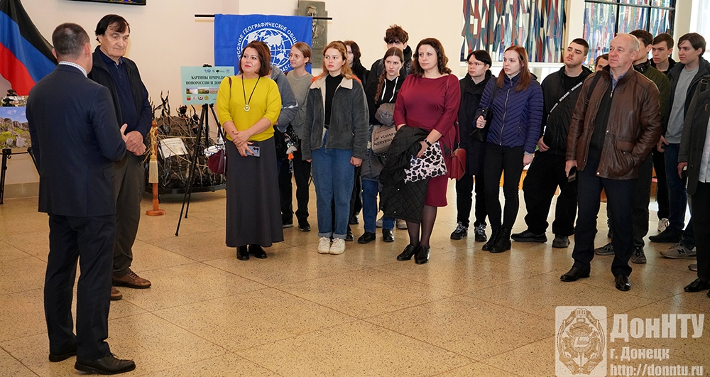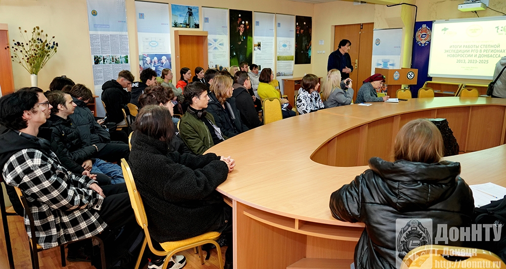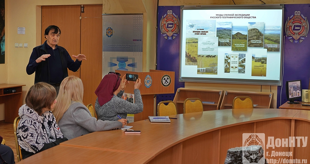 В Донецком национальном техническом университете 14 октября состоялась встреча студентов и преподавателей факультетов недропользования и наук о Земле, металлургии и теплоэнергетики, информационных систем и технологий, интеллектуальной энергетики и робототехники, а также горного факультета вуза с академиком Российской академии наук, доктором географических наук, профессором, специалистом в области ландшафтной экологии и заповедного дела Александром Александровичем Чибилёвым; директором филиала «Южный» Всероссийского научно-исследовательского института «Экология» Романом Владимировичем Кишканем и представителем Донецкого республиканского краеведческого музея, руководителем Молодёжного Центра Русского географического общества в ДНР Анной Юрьевной Ефимовой.