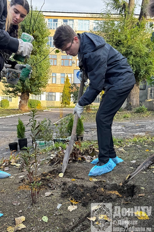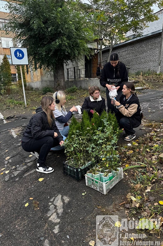 Ребята работали над озеленением двух клумб внутреннего двора университета: были высажены 69 кустов роз и 15 саженцев туи. Выбор растений не случаен: розы – это символ Донецка, стойкости и надежды, а туи – олицетворение долголетия, силы и жизненной энергии. Растения были предоставлены региональным отделением Российских студенческих отрядов ДНР. Теперь студенты и преподаватели смогут наслаждаться красотой аллеи. Эти растения не только украсят университет, но и станут символом процветания ДонНТУ, стойкости его студентов и преподавателей, а также долгосрочных перспектив развития региона.