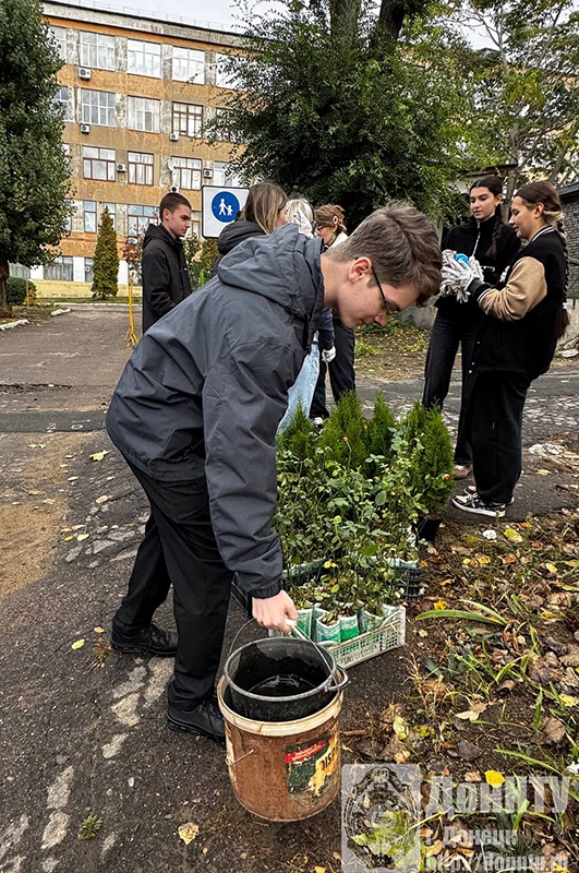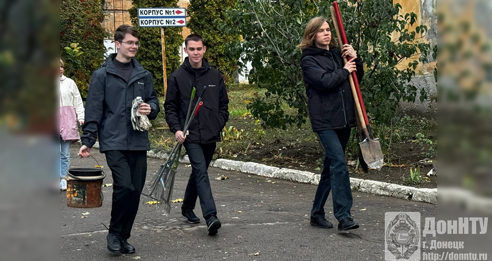 На территории Донецкого национального технического университета спецотряд «ФинФорс», в который входят студенты инженерно-экономического факультета, вместе со студентами-волонтёрами других факультетов вуза 13 октября провели субботник.