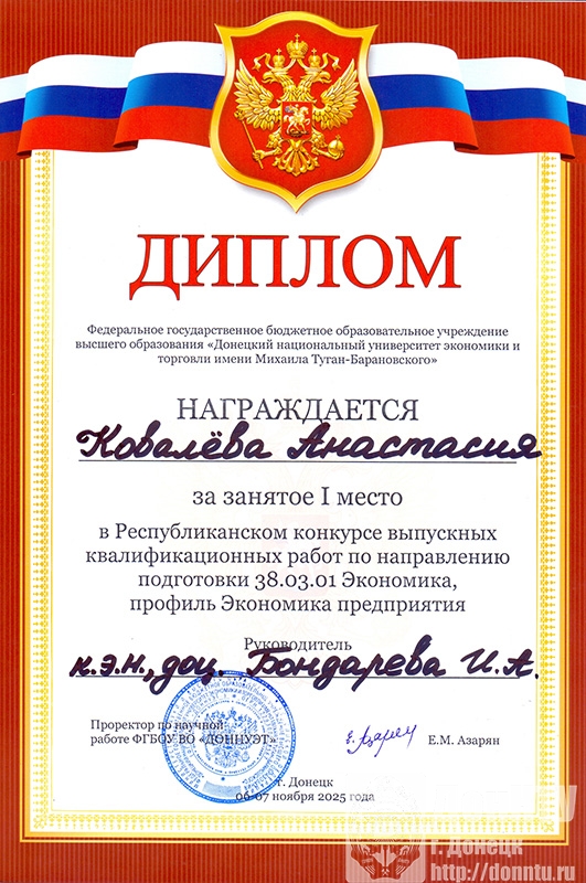 Выпускники ДонНТУ – победители Республиканского конкурса по профилю «Экономика предприятия»