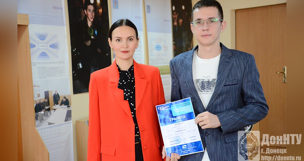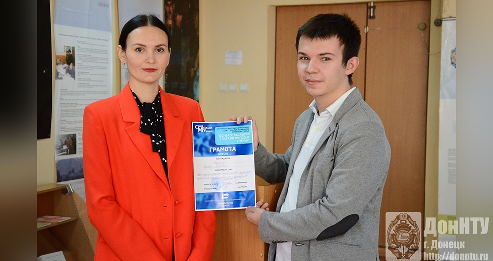 - I место – Даниил Блынский, «Закалка поверхности зубьев зубчатого колеса методом лазерного термического уплотнения» (факультет интегрированных и мехатронных производств ДонНТУ, гр. ИТМм-25); Никита Лавренчук, «Сравнительный анализ параметров сдвижения горных пород на основе автоматизированной методики для условий Донецкого бассейна» (факультет недропользования и науки о Земле ДонНТУ, гр. МС-22);