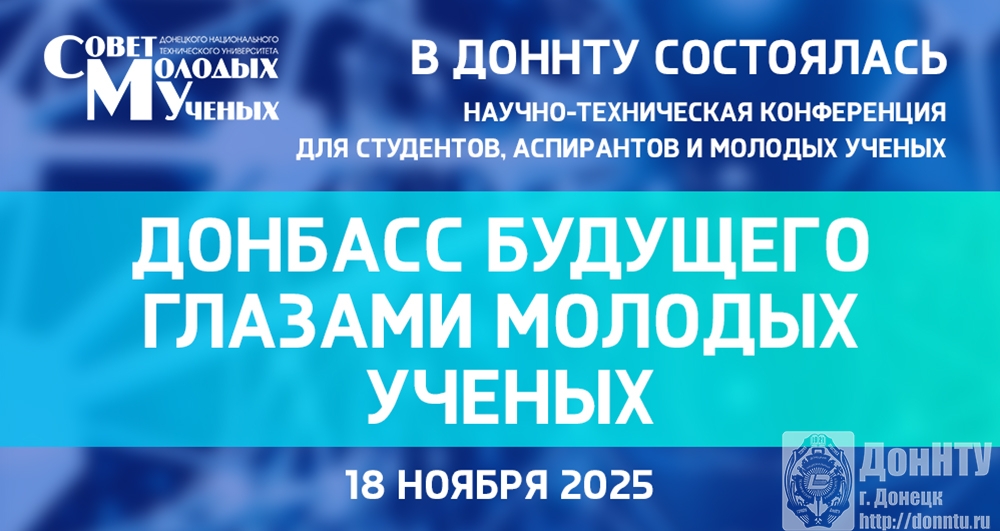 В Донецком национальном техническом университете 18 ноября состоялась научно-техническая конференция «Донбасс будущего глазами молодых учёных». В мероприятии, подготовленном Советом молодых учёных ДонНТУ, приняли участие более 140 студентов, аспирантов и молодых учёных из ведущих вузов и научных организаций Донбасса и других регионов России. На конференции работали четыре секции по различным областям науки.