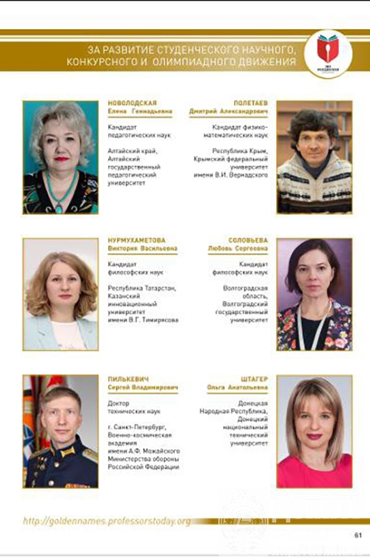 Всероссийский конкурс преподавателей вузов «Золотые Имена Высшей Школы» проводится Общероссийской общественной организацией содействия развитию высшего образования «Лига Преподавателей Высшей Школы» (директор её регионального отделения – декан горного факультета ДонНТУ Александр Николаевич Корчевский).