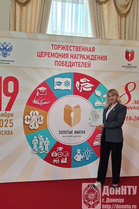 Старший преподаватель кафедры управления бизнесом и персоналом ДонНТУ Ольга Анатольевна Штагер стала победителем Всероссийского конкурса преподавателей вузов «Золотые Имена Высшей Школы» в номинации «За развитие студенческого научного, конкурсного и олимпиадного движения» в 2025 году. Достижение внесено в Книгу почёта преподавателей вузов Российской Федерации при поддержке Министерства науки и высшего образования РФ.