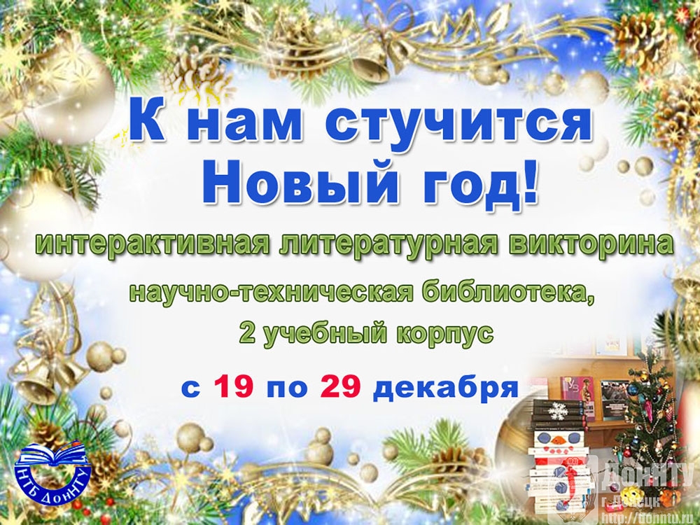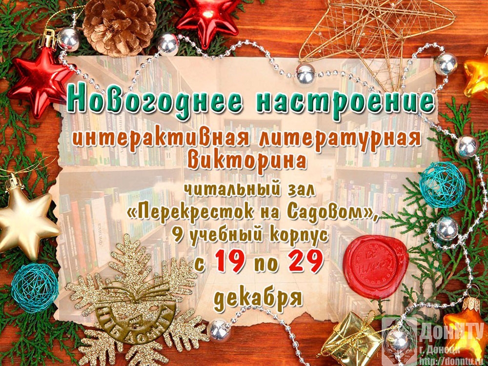 Также НТБ приглашает принять участие в фотосессии «Книжная инсталляция: Расскажи нам, ёлочка...» («Библиоцентр», 2 учебный корпус, 19 декабря 2025 – 14 января 2026) и литературных викторинах «К нам стучится Новый год!» («Библиоцентр», 2 учебный корпус, 19–29 декабря) и «Новогоднее настроение» (читальный зал «Перекресток на Садовом», 9 учебный корпус, 19–29 декабря), подготовленных к новогодним праздникам.