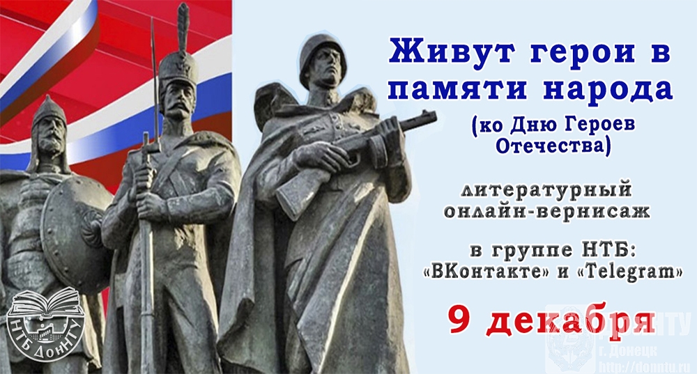– ко Дню героев Отечества принять участие в литературном онлайн-вернисаже «Живут герои в памяти народа» (в группах НТБ «ВКонтакте» и «Телеграм», 9 декабря);