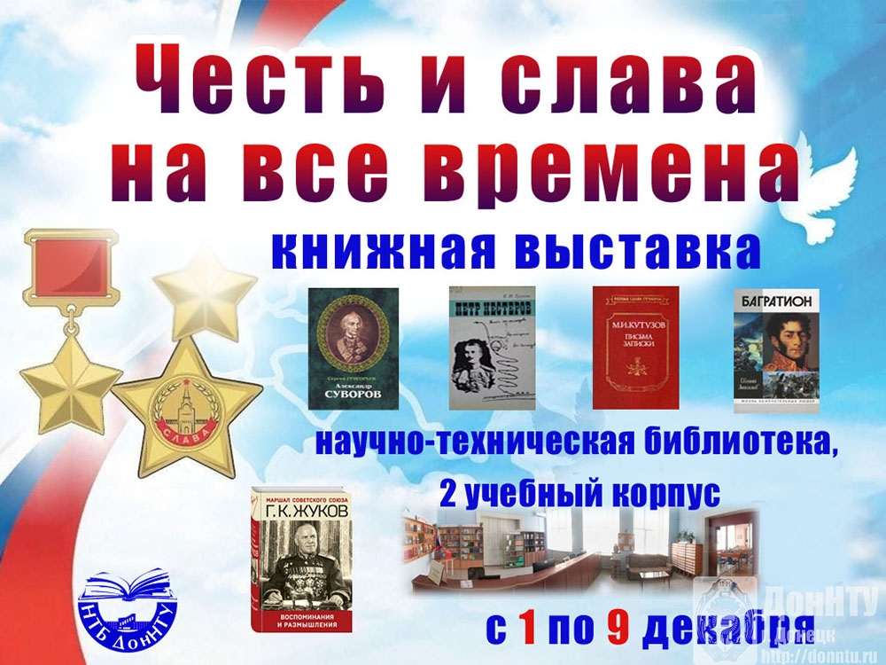 – посетить книжную выставку «Честь и слава на все времена» ко Дню героев Отечества («Библиоцентр», 2 учебный корпус, 1–12 декабря);