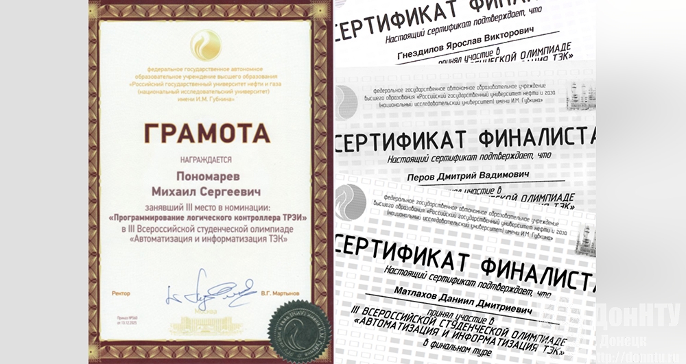Студенты факультета Михаил Пономарев (АУПм-25), Даниил Матлахов (АУП-23), Ярослав Гнездилов (СУА-22) и Дмитрий Перов (СУАм-25), успешно пройдя отбор среди более 500 участников заочного этапа III Всероссийской студенческой олимпиады «Автоматизация и информатизация ТЭК», были приглашены к участию в её финале, который прошёл 10–14 декабря на базе учебно-производственного центра «Залучье» РГУ нефти и газа (НИУ) имени И. М. Губкина. Михаил Пономарев занял III место в номинации «Программирование логического контроллера ТРЭИ».