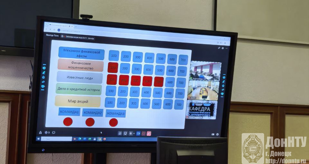 Командам была поставлена задача расследования финансовой махинации. Первый этап игры предполагал получение баллов для выкупа улик финансового нарушения путём правильных ответов на вопросы по финансовой грамотности. Команда ДонНТУ с этим прекрасно справилась, заняв позицию лидеров, и получила две улики, по которым выявила схему мошенников.
