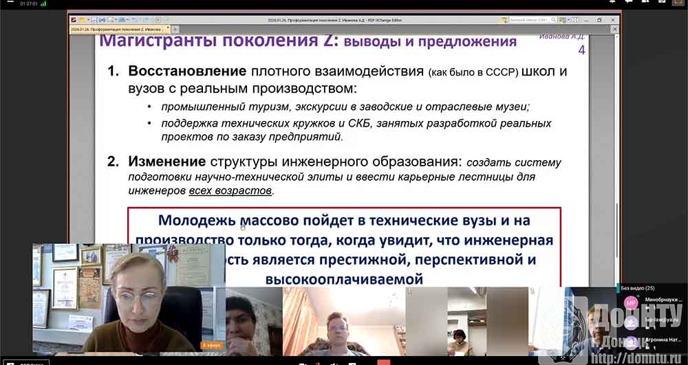 В ходе докладов членов Координационного совета были заслушаны сообщения представителей новых регионов Российской Федерации. Доцент кафедры международной экономики и маркетинга ДонНТУ, канд. экон. наук Эллона Ильинична Полякова рассказала об уникальном опыте работы Донецкого национального технического университета по стимулированию научно-исследовательской деятельности обучающейся молодёжи, студентов и молодых учёных, содействию внедрению инновационных разработок в промышленность новых регионов, а также укреплению научно-технического потенциала Донецкой Народной Республики.