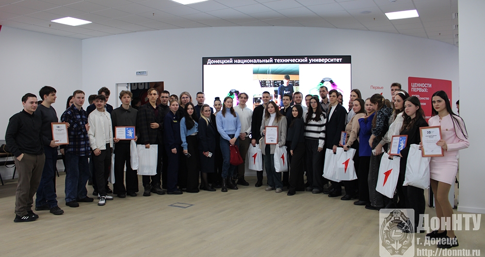 Семь студентов ДонНТУ были удостоены благодарственных писем Министерства молодёжной политики ДНР: Владислав Задорожный, Семён Мирошниченко, Ксения Петрова, Кирилл Петренко, Евгений Ляхов, Андрей Козлов, Борис Калиниченко, а 14 – благодарностей «Движения Первых».