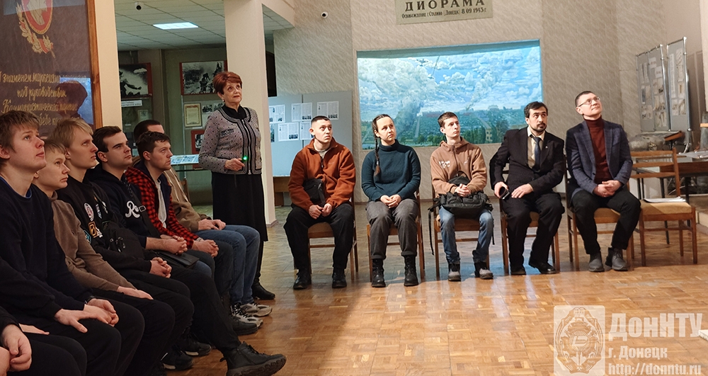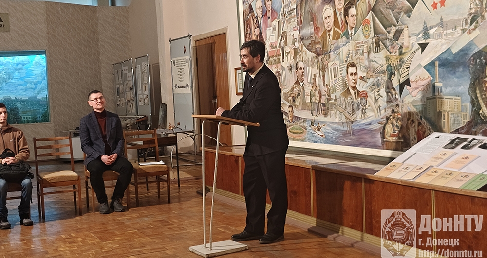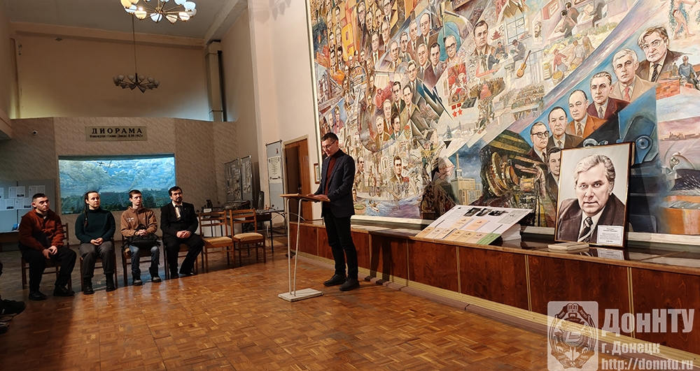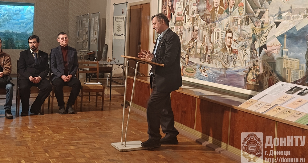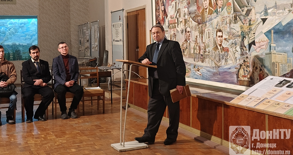 Директор музея Л. Д. Ковалёва в своём выступлении напомнила о грядущей 105-й годовщине вуза и о роли ДонНТУ в становлении и развитии Донбасса, а также рассказала о традициях празднования 100-летних юбилеев ведущих учёных ДИИ – ДПИ – ДонНТУ. Декан ФМТ П. А. Гнитиёв остановился на ключевых вехах биографии