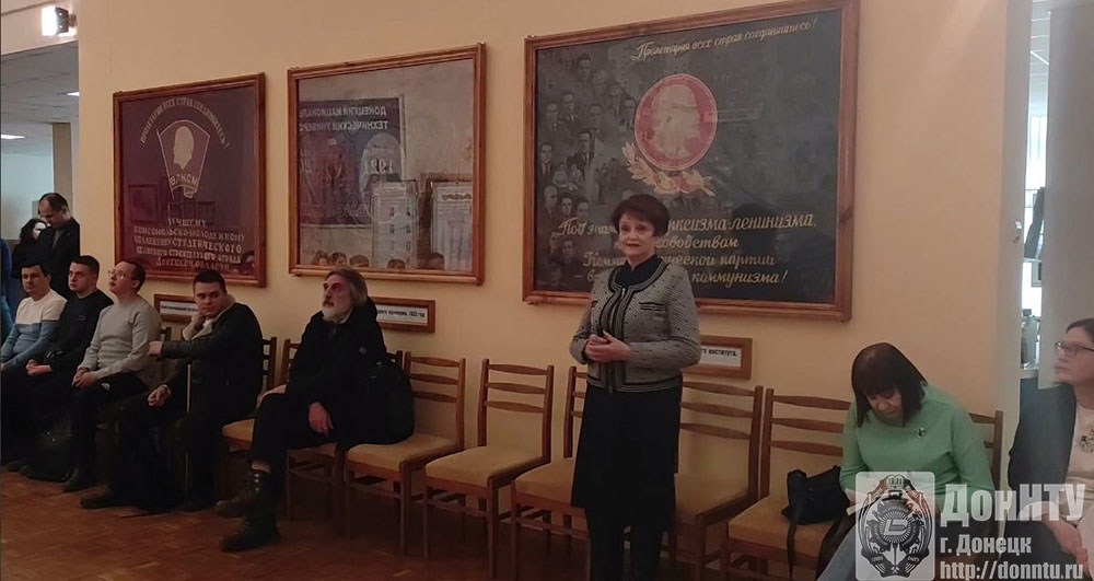 Открыла встречу директор музея истории ДонНТУ Л. Д. Ковалёва, которая рассказала о донецких политехниках, защищавших Отечество в годы Гражданской и Великой Отечественной войн. Она напомнила, что в 1941–45 гг. около 500 преподавателей и студентов с оружием в руках отстаивали Родину, не щадя собственной жизни, а 8 из них были удостоены высокого звания Героя Советского Союза.