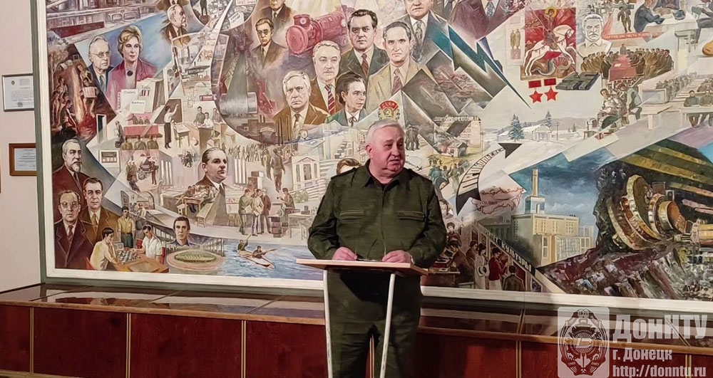 Ректор А. Я. Аноприенко сказал, что ещё в юности слышал, что в жизни каждого поколения должна быть своя война, и это, к огромному сожалению, подтвердилось. Уже почти 12 лет на территории Донбасса продолжаются военные действия, а СВО длится без малого 4 года. Он также рассказал о двух представителях университета, заслуживающих благодарную память политехников. Георгий Васильевич Малеев, ветеран Великой Отечественной войны, отличный снайпер, в конце ВОВ командовал ротой, которая охраняла маршала Черняховского. И хотя Г. В. Малееву прочили успешную военную карьеру, после окончания войны он вернулся в родной вуз, который во времена его ректорства гремел на весь Советский Союз.