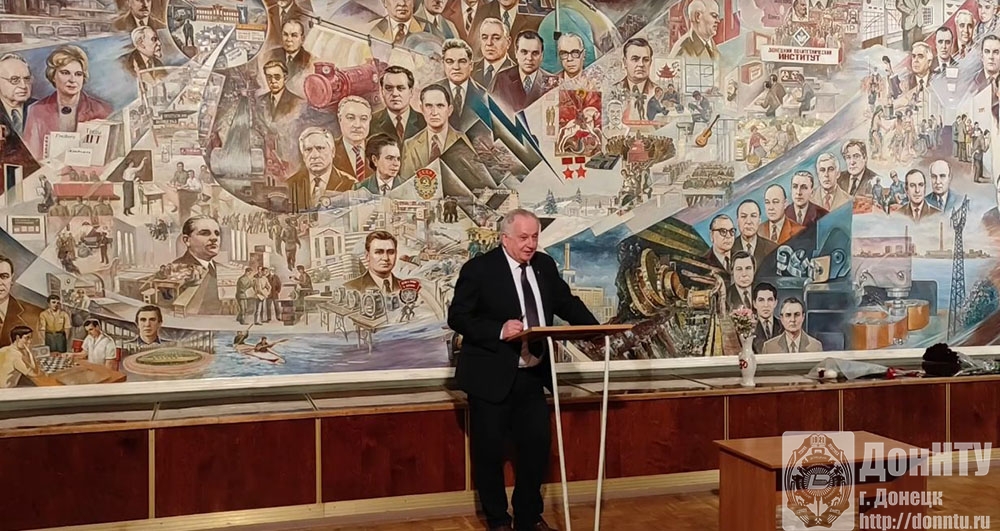 Проректор С. В. Борщевский рассказал о представителях горного факультета – Олеге Кузьмиче Пономаренко, прошедшем всю войну и закончившим её в Берлине, а также отважном танкисте Борисе Ивановиче Медведеве. «Очень хочется, чтобы в вузе продолжала жить преемственность поколений и все выпускники Донецкого политеха остались после вуза возрождать родной Донбасс, чтобы выполнялись заветы отцов и дедов», – подчеркнул проректор.
