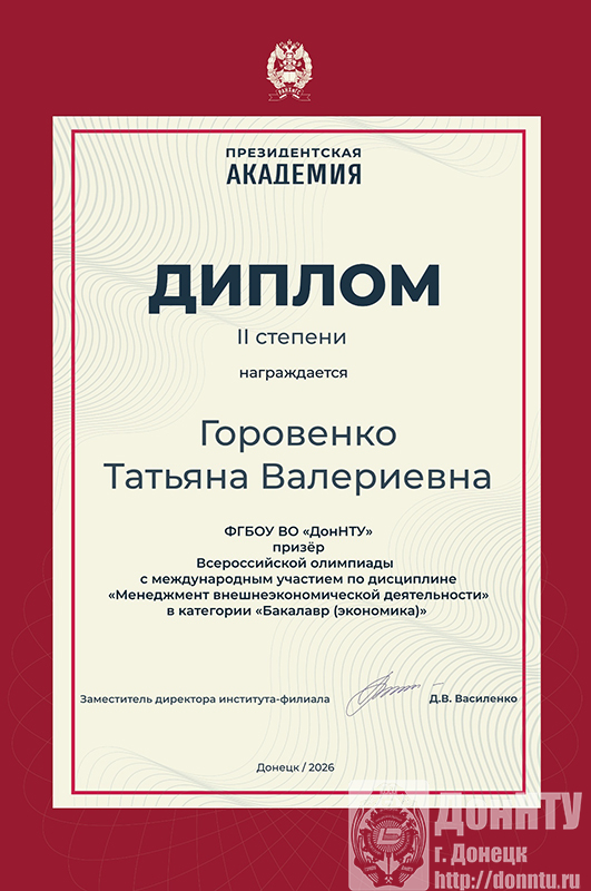Студенты кафедры международной экономики и маркетинга ДонНТУ приняли участие во Всероссийской олимпиаде с международным участием по дисциплине «Менеджмент внешнеэкономической деятельности»
