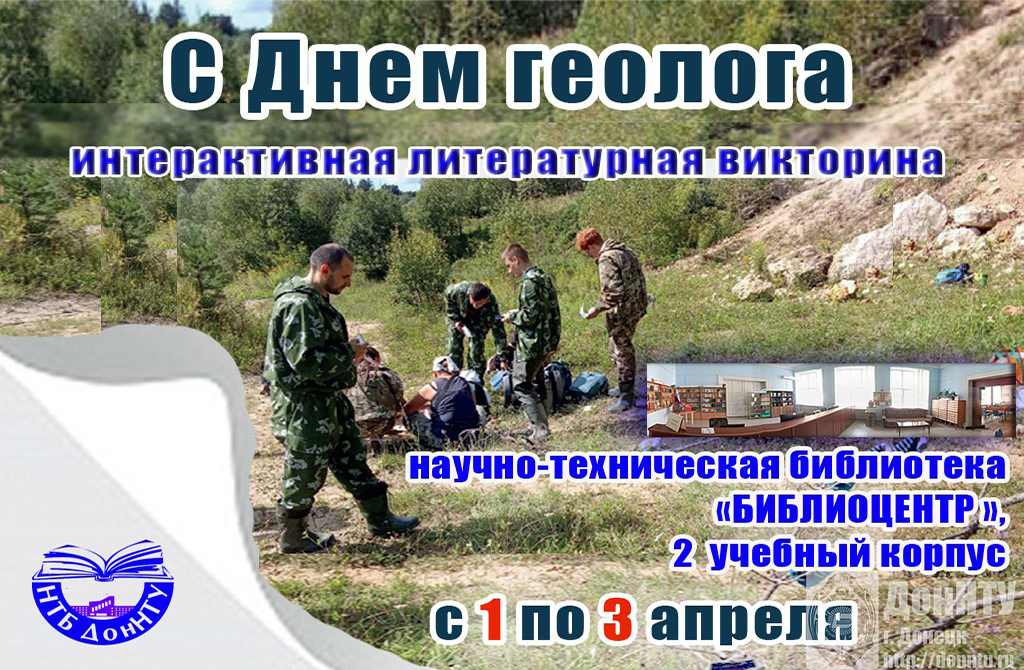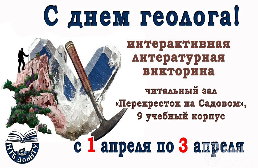 • принять участие в интерактивных литературных викторинах «С Днем геолога» («БИБЛИОЦЕНТР», 2 учебный корпус и читальный зал «Перекресток на Садовом», 9 учебный корпус, с 1 по 3 апреля);