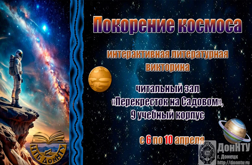 • принять участие в интерактивной литературной викторине «Покорение космоса» (читальный зал «Перекресток на Садовом», 9 учебный корпус, с 6 по 10 апреля);