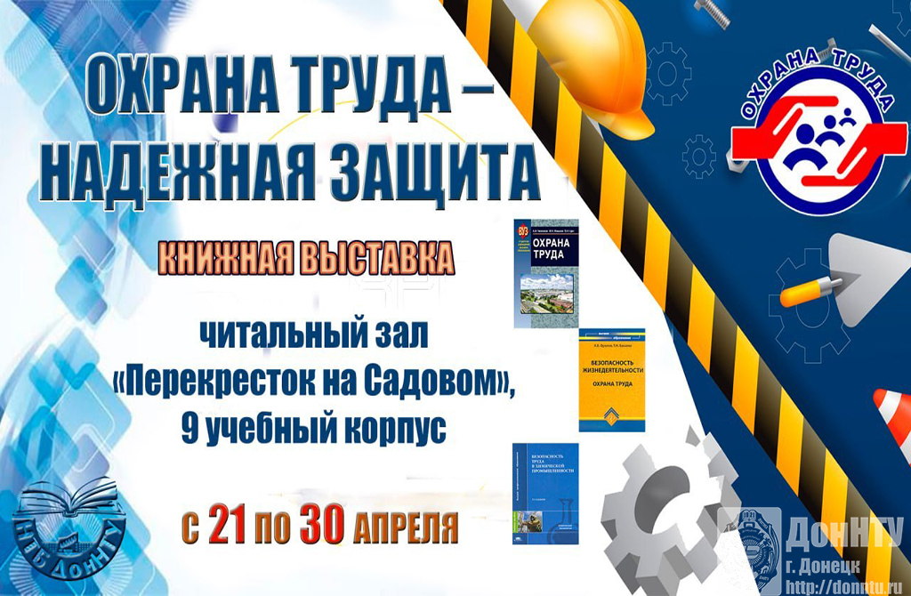 к Всемирному дню охраны труда ознакомиться с книжной выставкой «Охрана труда – надежная защита» (читальный зал «Перекресток на Садовом», 9 учебный корпус, с 21 по 30 апреля);