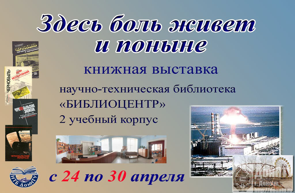 к Международному дню памяти жертв радиационных аварий и катастроф ознакомиться с книжной выставкой «Здесь боль живет и поныне» («БИБЛИОЦЕНТР», 2 учебный корпус, с 24 по 30 апреля).